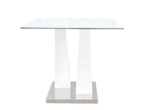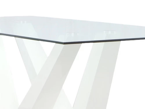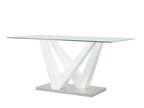 Serve your guests with this modern design dining table that features a rectangular clear glass top with a modern white high gloss frame and stainless steel base. It is perfect for contemporary aesthetics in your dining room.