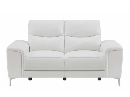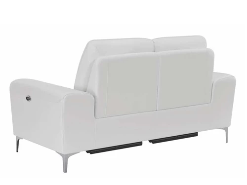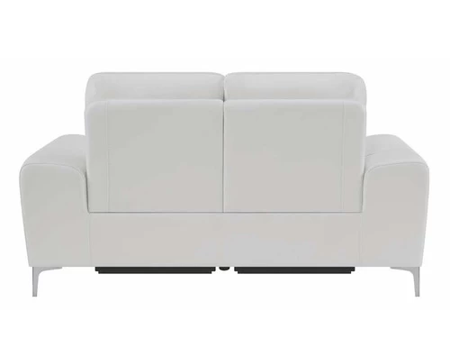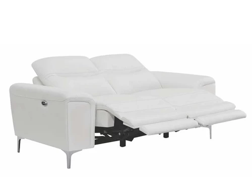 Enjoy countless hours of leisurely lounging with this chic, dual reclining loveseat. Equipped with power motion functionality, it’s a stylish and sensible choice. A built-in switch panel with USB conveniently charges electronics while keeping them within arms’ reach. A Certi Pur certified memory foam topper and smooth, buttery, top grain leather match upholstery offer unparalleled softness and comfort. This contemporary power loveseat is also available in blue color to enhance your personal style.