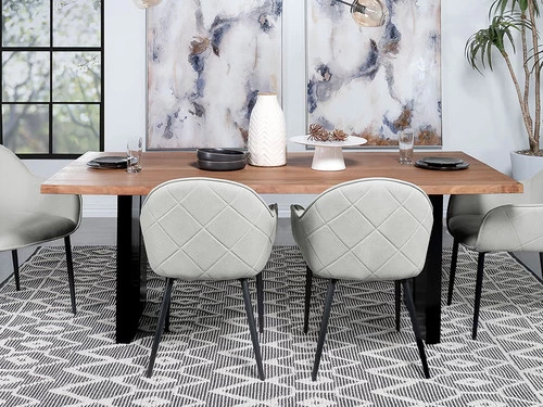 Experience unforgettable dining moments with this remarkable table, as it breathes new life into your dining room with its exquisite beauty. Enhance the overall look with our timeless dining chairs, where classic design meets a modern twist, offering an elegant silhouette, full wrap-around seats, contemporary diamond pattern details, rich upholstery, and a harmonious blend of aesthetics and functionality.