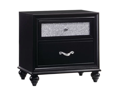 Inject some rock n’ roll glam into your bedroom with Barzini Collection. The pieces are constructed of Asian hardwood and veneers in a bold, black finish. This finish is paired with a unique and elegant metallic leatherette upholstery adorning bed and casegoods that not only does this add intriguing style, but makes for a comfortable headrest as well.