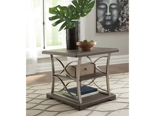 Part cool contemporary. Part richly rustic. The Baymore coffee table serves up a beautiful balance of mixed media style. The table’s plank-effect surfaces with wire brush veneers are treated to a touch of gray for a hint of weathered character. Crafted of aged pewter-tone metal, the double X-brace supports are a unique twist.