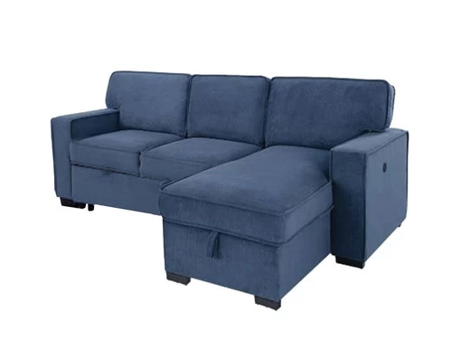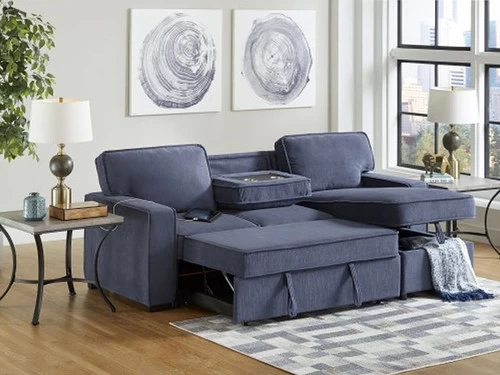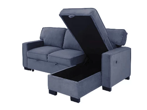 As practical as it is refreshingly modern, the Belen Sleeper Sectional. This L-shaped section features cushions to give you the best in comfort and support. The sofa on the side unfolds in the bed for your guests, and the other side rises to reveal storage for bedding and pillows, which makes it a very useful piece of furniture. This Sofa features a drop-down table with cup holders.This sectional can be assemble right or left according to your preference.