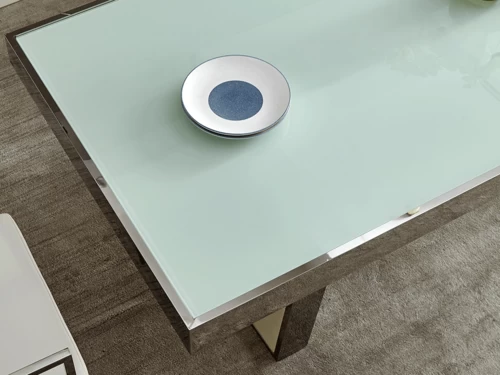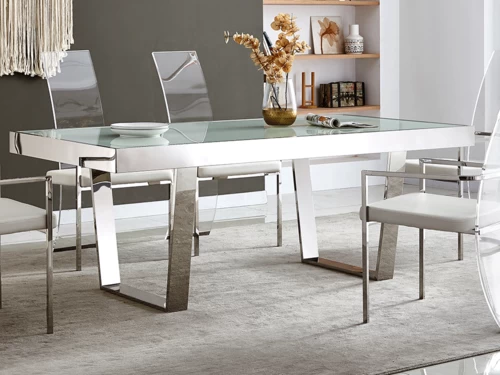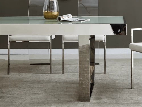 A true work of Art this Retro-Modern design from the best of the 70’s Features the highest statement of class in American ,French and Italian fusion making this stylish statement a must for those who seek the best for your home, Highly Mirror Polished Stainless Steel with soft edges framed over ½” tempered and painted and finished Glass create an homage to the likes of Pierre Cardin ® inspired tables, easily the best design and generational investment in Furniture any Family can make.