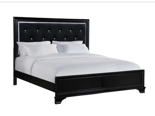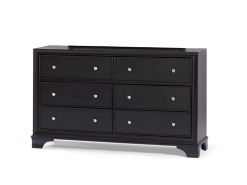The Brooklyn bedroom set is dramatic and glamorous. The set features a textured embossing and a beveled trim. The crushed velvet upholstered headboard features 3-way-touch LED lighting for a soft reading light. The decorative crystal knob hardware adds an elegant touch to the set.