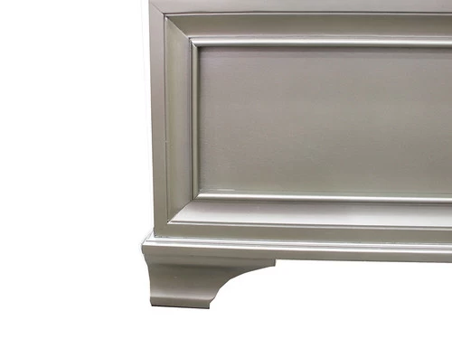 The Brooklyn bed is dramatic and glamorous. The bed features a textured embossing and a beveled trim. The crushed velvet upholstered headboard features 3-way-touch LED lighting for a soft reading light. The decorative crystal knob hardware adds an elegant touch.