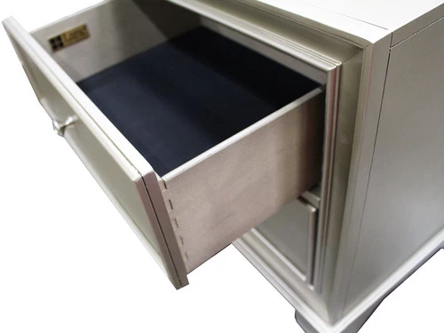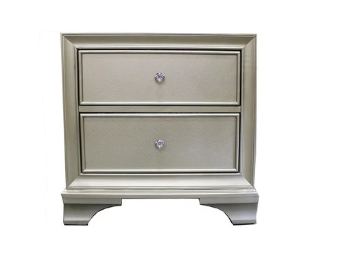 The Brooklyn Nightstand is dramatic and glamorous. The Nightstand features a textured embossing and a beveled trim. The decorative crystal knob hardware adds an elegant touch to the Nightstand.