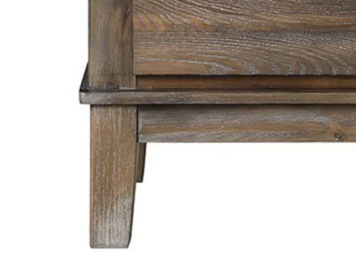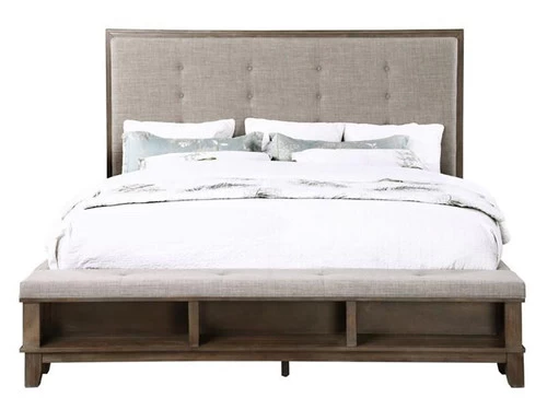 Bring space-saving storage into your restful retreat with the Cagney Collection. Crafted of distinctive Acacia wood, this piece is upholstered with a button-tufted back and features three spacious compartment areas to store and display your belongings.
