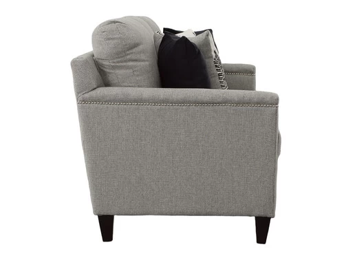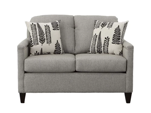 Make a design statement with this Transitional Modern loveseat, micro linier silver studded arm details along with multiple sized collection. Bold black and white accented graphics and coordinating chair options make this a perfect fit for any modern living environment.