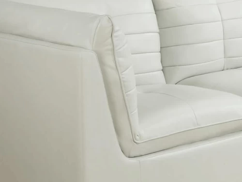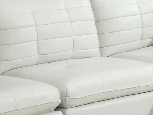 Enjoy contemporary style and room to relax with the comfortable and beautiful Captiva White Sectional with Ottoman. This piece will give your living room an attractive element of warmth and character. You can choose the option on the right or left side. The Ottoman is included. Material: White PU.