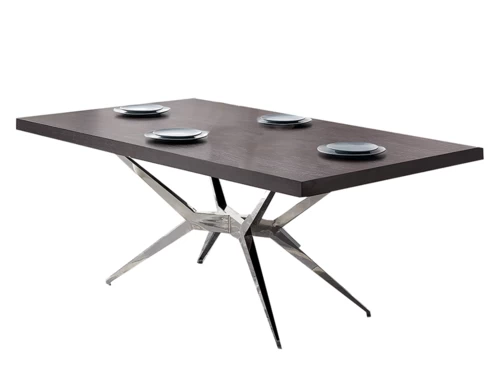 Carrie Dining Table result of our design evolution, featuring our artisans hand welding and polishing ability over Stainless-steel mirror polished material, creating a sinuous multi direction base of opposing shapes and sizes while maintaining a well balanced and elegant conclusion, for integrated into any ambiance or category, can be Contemporary, Modern, Transitional, or even Traditional.