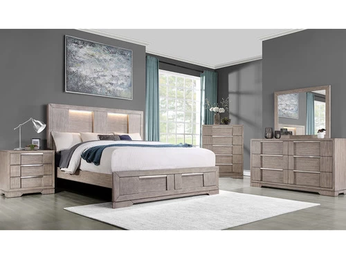 This collection features a shadow effect lighted headboard bed. Casegoods offer durability drawers with french dovetailing on the fronts and English dovetailing on the backs. Crafted of hardwood solids and veneers and finished in a crisp light oak finish, this set is sure to look amazing in your bedroom.