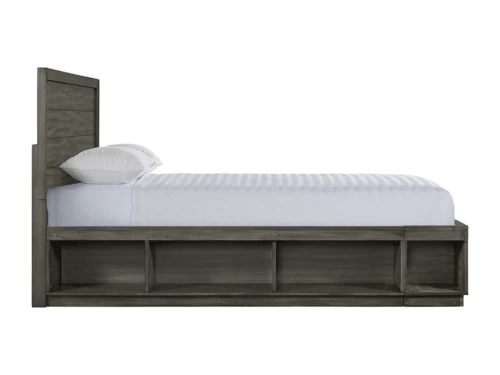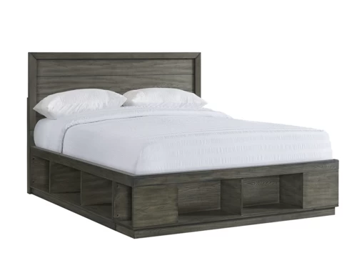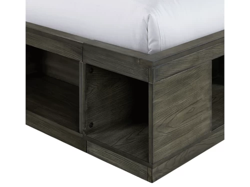 Build your bedroom like the room of your dreams with this beautiful transitional style bed. The gray finish adds a rustic touch to your space. The clean and elegant design of this bed blends well with a wide range of décor. Offers cubby storage.