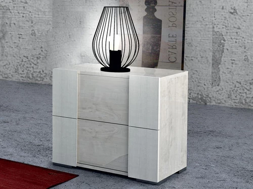Fiorella comes to us in a high gloss gray wood finish lacquer with white metallic accents. Sides and the top of the case goods all have an exquisite wood finish, while the headboard features a combination of lacquer and upholstery in a slight sleigh look with LED lighting. Fiorella has a modern a retro feel with but is also trendy enough to feel minimalistic, almost spartan in its simplicity. This bedroom is a dream come true for contemporary lovers, post modern aficionados and mid century fans because of its timeless design. Fiorella comes straight from Italy’s expert craftsmen using only the best materials available.
