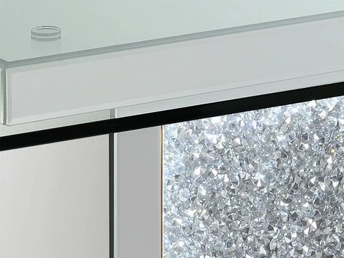 – Mirror tile trim encompasses the surface for a highly reflective frame.