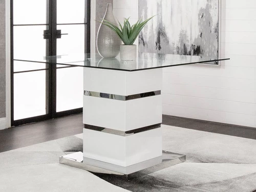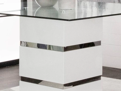 Big and bold yet sleek and contemporary. The Gamma Table features a modestly large, square tempered glass table with our white column style base.
