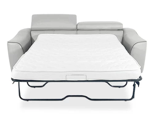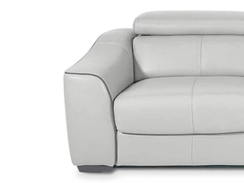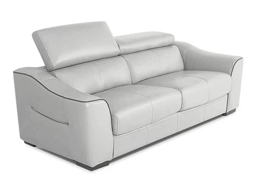 Experience the pinnacle of comfort and style with our Kerala gray leather upholstered sofa. Its adjustable headrests ensure personalized relaxation, while chrome details exude modern elegance. Enjoy deep, wide seating on high-density foam, and effortlessly transform it into a sleeper with a full-size mattress and support bar. The block-style legs provide stability and a contemporary touch. Elevate your living space with this versatile and chic sofa.