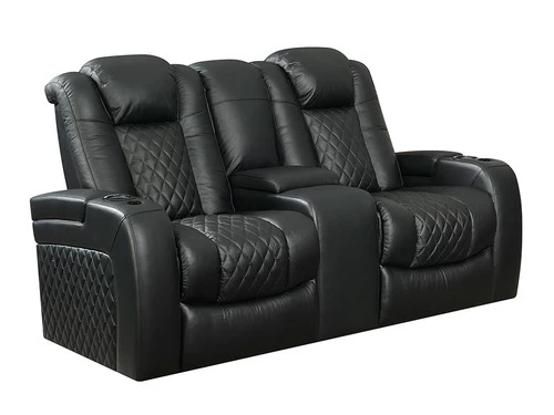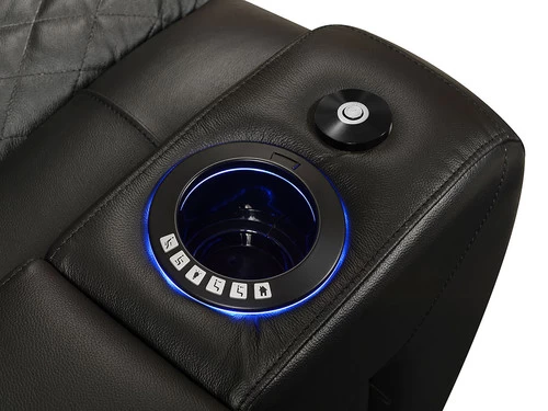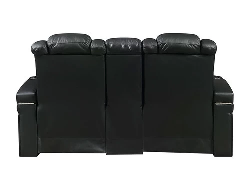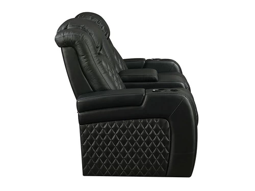 This Loveseat will be your favorite place to relax and enjoy with the Lisboa Loveseat Power Recliner. This Loveseat comes in black leatherette upholstery with diamond accent quilting and contoured bucket seating for extra support and comfort, in a modern look. When it comes to comfort, you’ll love the reclining bucket seat and its power-adjustable headrest that offers a custom comfortable angle for watching TV. It’s also convenient: illuminated cup holders, built-in power button with USB port on the controller, flip-up padded armrest with hidden storage. It is sure to become a hit in any home.