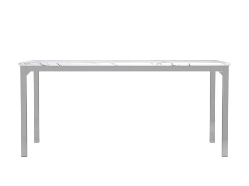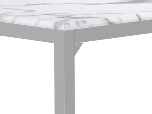 Dress up a dining room with striking, modern opulence. This gorgeous, contemporary dining table flaunts a smooth, white, marble top for a luxurious design that’s sure to impress. The table base is made with top-quality metal in a gleaming chrome finish that shines in the light. From everyday dinners to elaborate feasts, the rectangular surface provides all the space you need for family dining enjoyment. Surround this modern table with your favorite chairs to complete a formal dining room in style.
