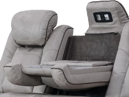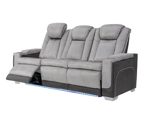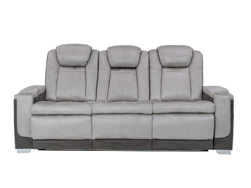 This sleek, ultra-modern power reclining sofa has it all. With head-to-toe comfort. This double reclining sofa is plush in all the right places and will support you for longer than you can binge-watch your favorite TV show. The middle seatback drops down into the convenient table-top with cup holders, the perfect resting spot for tablets and magazines. Features including wireless and USB charging, an adjustable headrest and LED light on the bottom rail make this the next generation of power recliners.