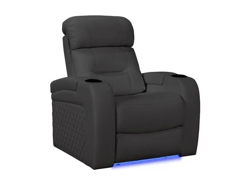This Recliner will be your favorite place to relax and enjoy with the Power Recliner. This Recliner comes in gray upholstery with cross stitching , lattice detailing, with a modern look. When it comes to comfort, you’ll love the reclining bucket seat and its power-adjustable headrest that offers a custom comfortable angle for watching TV. It’s also convenient: illuminated cup holders, built-in power button with USB port on the controller, flip-up padded armrest with hidden storage. It is sure to become a hit in any home.