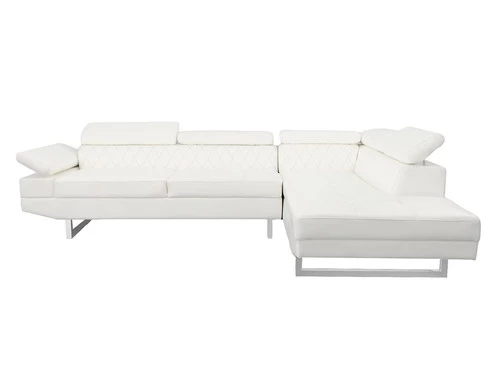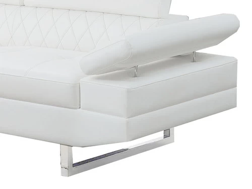 The elegant Noah Sectional comes with a unique triple ratchet back design. Low profile wide arm ratchets up for extra support. European style high metal base highlights the cantilevered design Stainless steel legs accent this sectional for a polished finish while adjustable seats provide comfort and support. The Ottoman piece to add extra sitting space with ample storage.