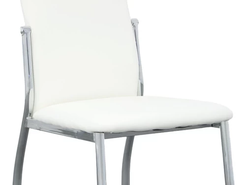 The chromed metal chair frame ensures sturdy support on this contemporary chair and its stylish curved legs add an elegant touch to this chair. The PU leather seat and back provide comfort for your guests.