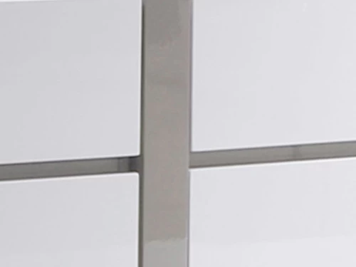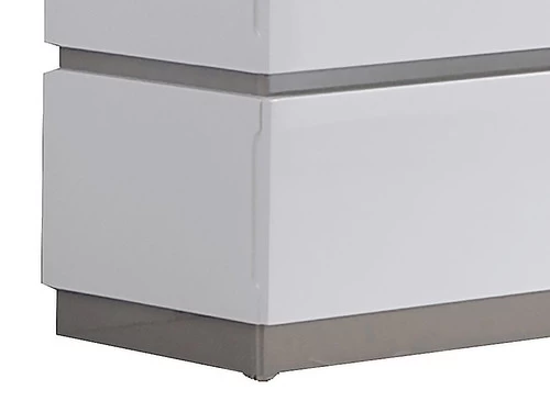 A full size dresser with six spacious drawers for storage, featuring an all-wood frame in a moisture-resistant high gloss 2-tone white and gray finish and comes fully assembled. Matching mirror available