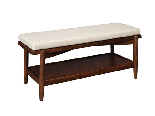 Elegant tones and materials combine with expert craftsmanship in this handsome wood bench. A desert teak finish imparts a rustic warm touch. Padded seat cushion provides comfort and convenience with the style. This handsome bench makes a great seat at the dining table or as a standalone piece in a family room.