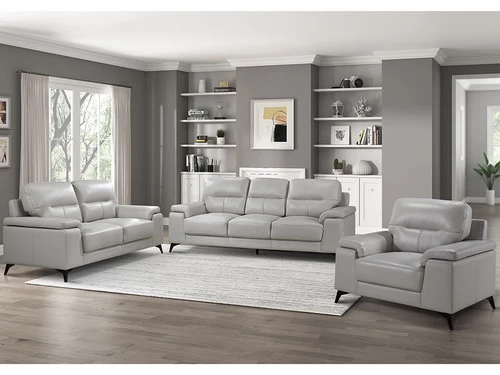 This set is modernly detailed with clean lines and bold arms, as well as slim legs. Styled for the modern home, the sofa set blends the luxurious feel of leather with the comfort of plush seating. The top grain leather cover, with faux leather, enhances the sleek profile of the collection. Contoured pillow-top arms and black metal legs further enhance the modern stance. Relaxation is important and on this sofa set you will feel very comfortable.