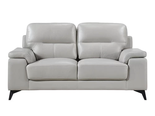 This piece is modernly detailed with clean lines and bold arms, as well as slim legs. Styled for the modern home, the loveseat blends the luxurious feel of leather with the comfort of plush seating. The top grain leather cover, with faux leather, enhances the sleek profile of the collection. Contoured pillow-top arms and black metal legs further enhance the modern stance. Relaxation is important and on this loveseat you will feel very comfortable.