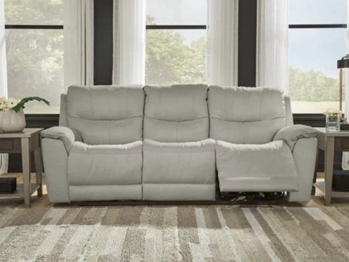 Prepare to be moved, because this power reclining sofa is not only fashionable and functional but also a whole lot of fun. With its warm and neutral tones and soft, plush micro suede upholstery, this highly contemporary piece suits your relaxed style. An adjustable headrest, extended ottoman, and zero-gravity mechanism are yours at the touch of a button. Given the modern features, scoop seating, and ample back pillow support, you’ll find it all too easy to get lost in comfort.