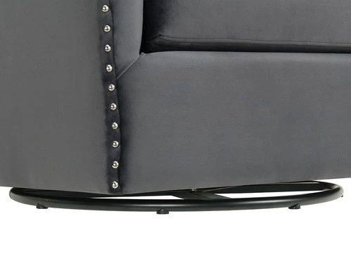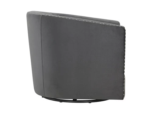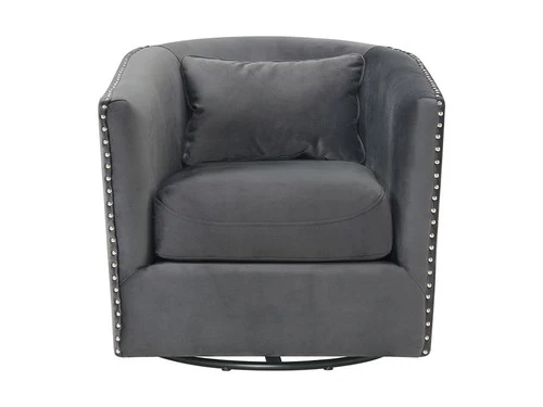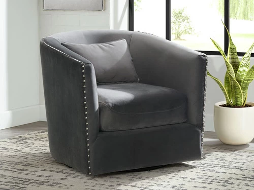 The Stanton Swivel Chair is going to be a knockout in your home! This chair features a thick, seat cushion that is comfortable and will have you never wanting to get out of this chair. Chrome, nail head trim is outlined along the edges of the chair, instantly adding extra flair to this already stylish piece. The chair also comes with one pillow that matches the transitional colors that the chair comes in. Add this swivel accent piece to your home today for a look that will never go out of style!