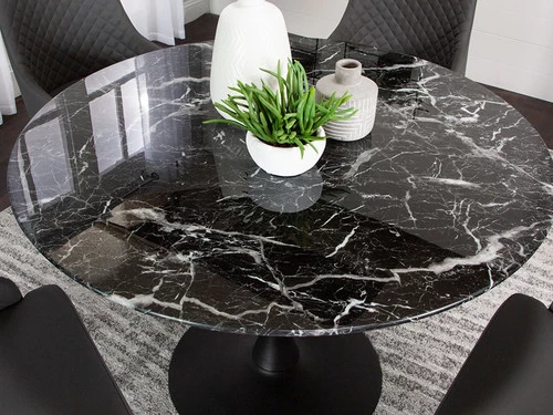 – Black marble glass top.