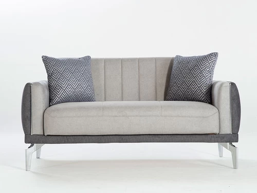 The Valens Loveseat is a modern masterpiece crafted with clean lines and organic curves for a look that invites comfort and sophistication into the heart of the home. This suave two-toned Loveseat is upholstered in velvety performance fabric with plush tailored pleating and sleek chrome accents throughout its design. Its densely padded seat converts into a sleeper by folding down its back in one swift motion and revealing a spacious bed for overnight guests.