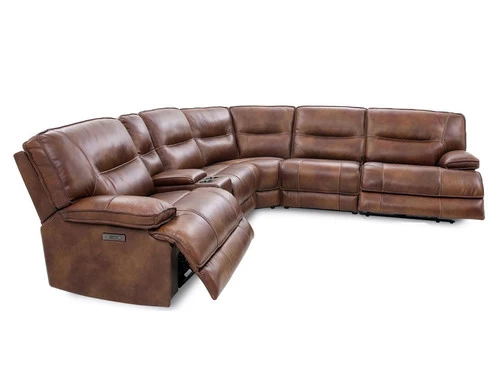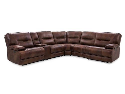 The Volos Sectional has top grain leather match upholstery and great comfort make this sofa a perfect piece for your living room. Complete with power recliners and electric headrest, cup holders, and roomy storage console, this couch is perfect for unwinding and relaxing with friends and family.Includes USB port. One(1) console.