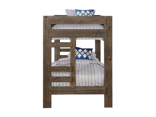 Elongated lines from this twin bunk bed add structure to any shared bedroom. Matching case pieces with center metal glides look great when complete with the optional trundle or storage options. Crafted of solid pine, the frame features full-length guard rails and built-in ladders for a sleek and smooth feel. Emit a rich and warm aura from the gun smoke finish over a slightly exposed wood grain.