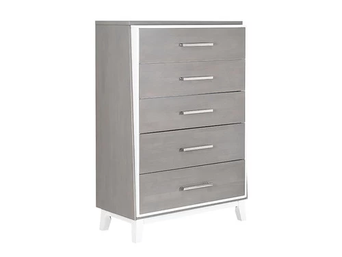 The Zephyr Chest features drawers for storage and a white and gray two tone finish, this has everything you need to elevate any bedroom space. It is constructed of rubberwood solids and veeners.